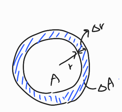 $\Delta A =\pi 2r \Delta r+ \pi \left( \Delta r \right )^{2}$
