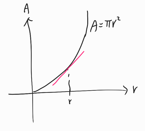 원의 넓이를 미분한다는 것은 아래 극한값을 구하는 것입니다.
